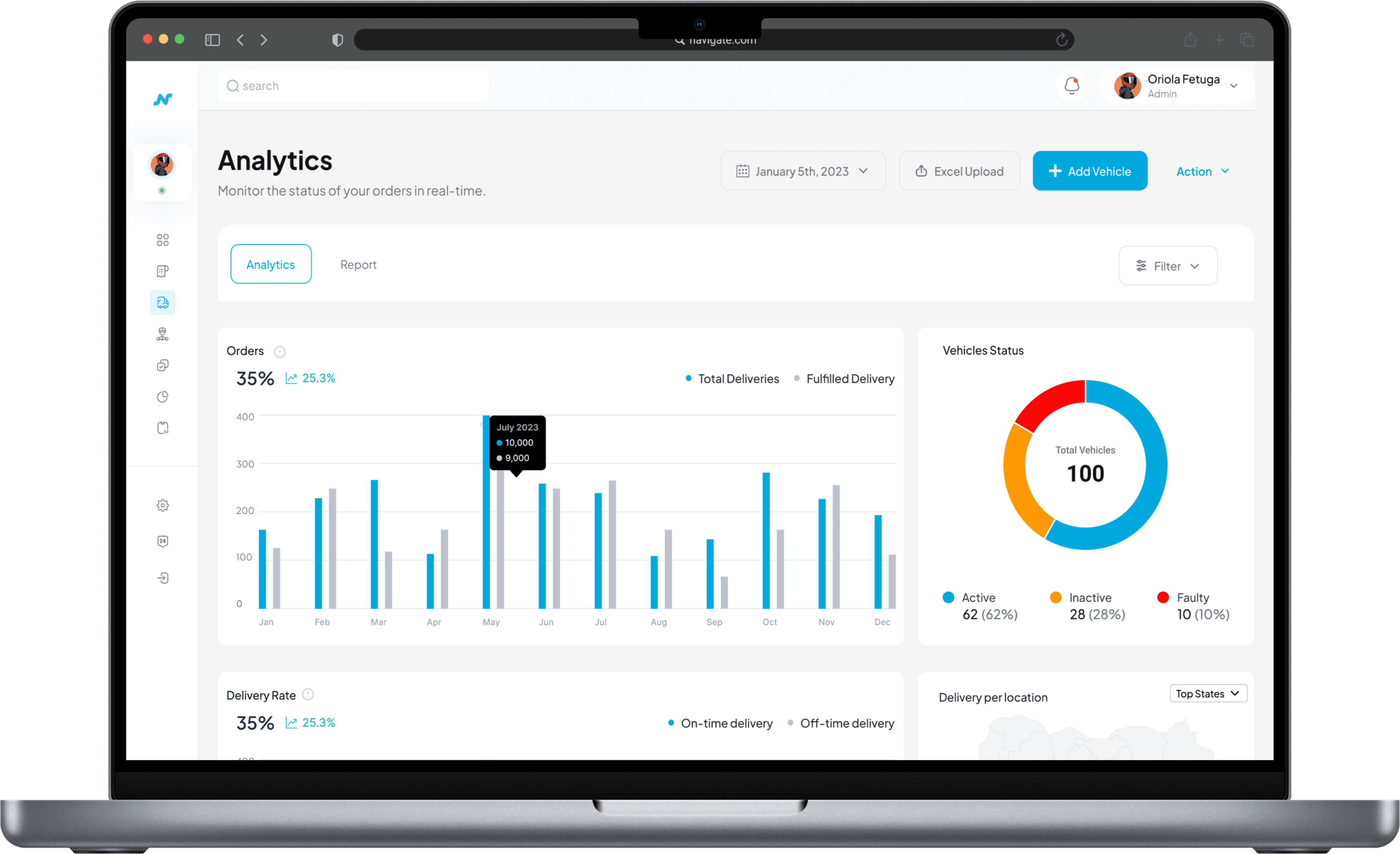 Quick access to key business analytics such as delivery performance, payment status, and fleet efficiency